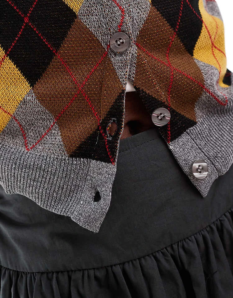 Daisy Street Grey Marl Cardigan Withharlequin Pattern Front Panel For Women