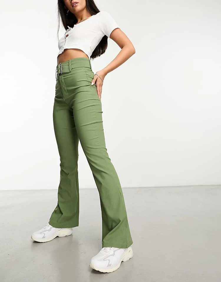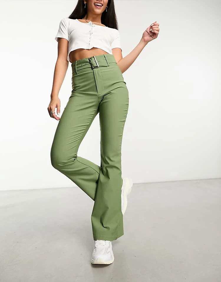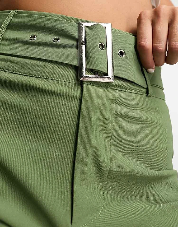 Daisy Street High Waisted Bengaline Trousers With Belt In Sage Co-ord For Women