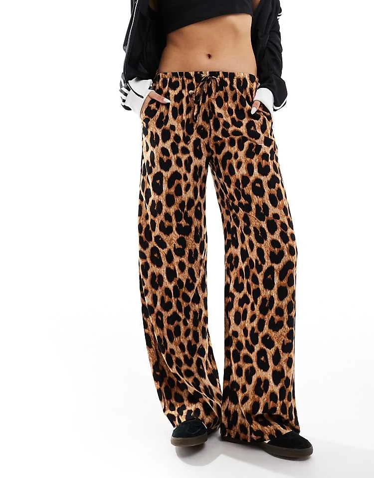 Daisy Street Leopard Print Pull On Trousers With Draw Cord For Women