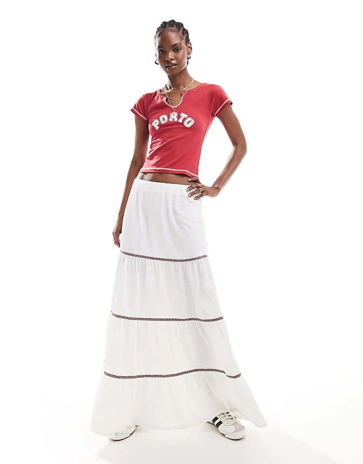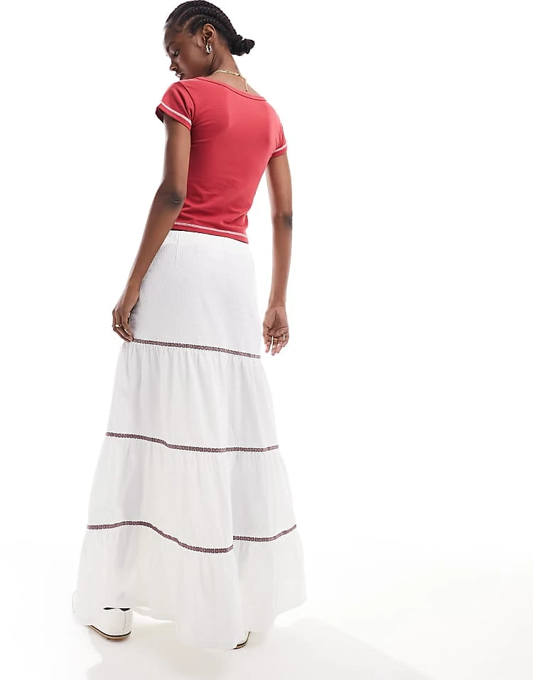 Daisy Street Low Rise Maxi Boho Skirt In White With Lace Trim For Women
