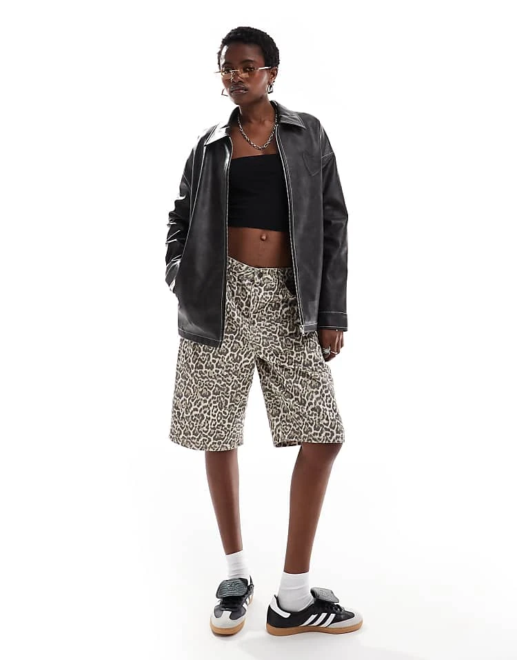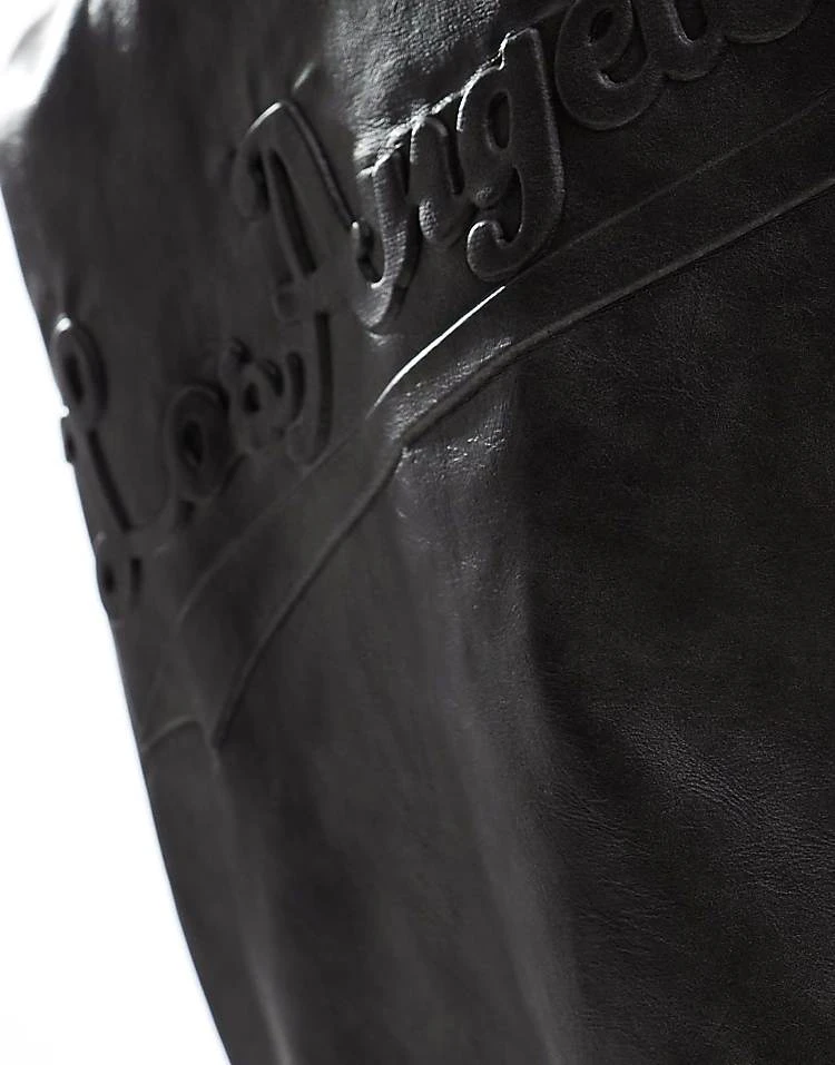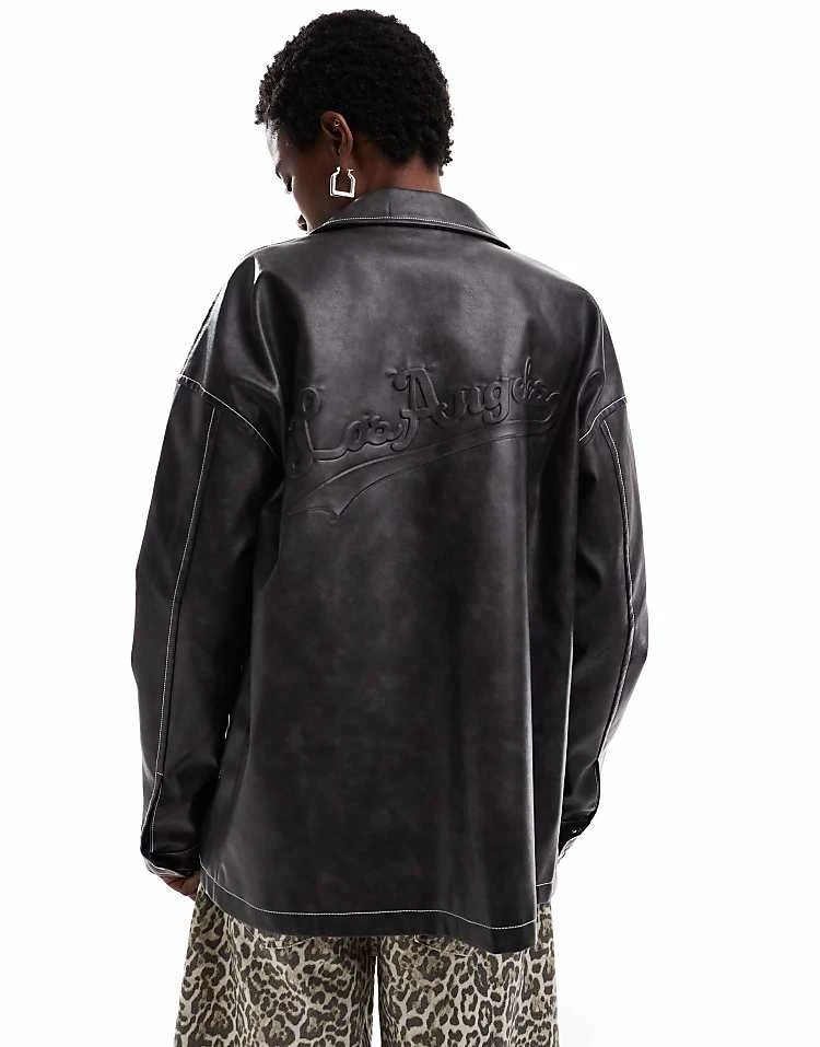 Daisy Street PU Boxy Jacket With Los Angeles Applique For Women Black