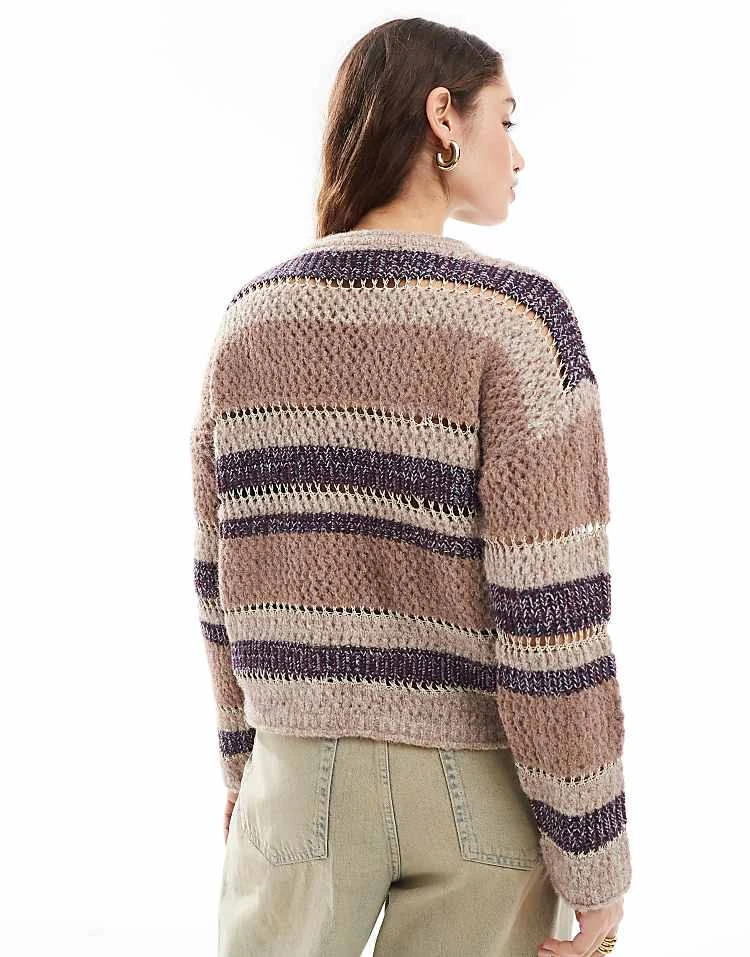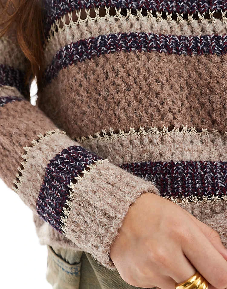 Daisy Street Wavey Loose Knit Extreme Relaxed Jumper For Women Multi